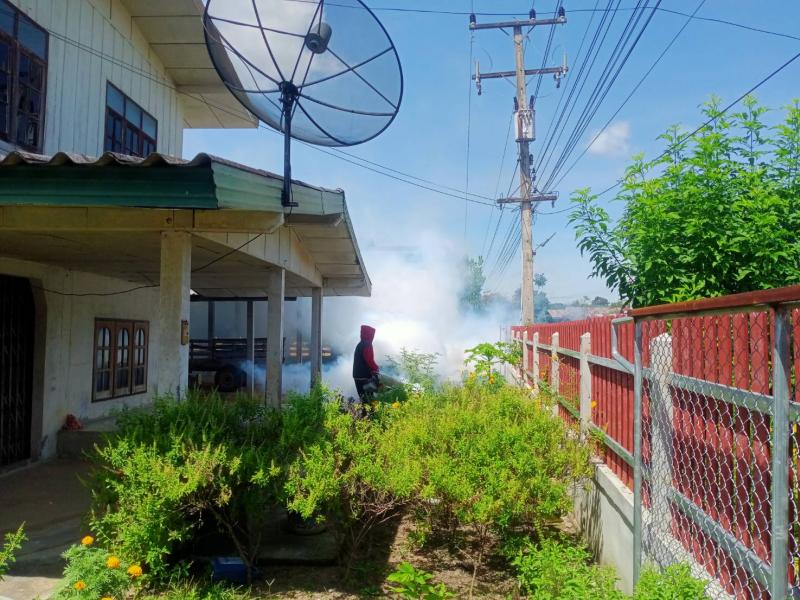 กิจกรรม : ฉีดพ่นหมอกควัน สำรวจลูกน้ำยุงลายทุกหลังคาเรือน ปรับปรุงสิ่งแวดล้อมในการกำจัดแหล่งเพาะพันธุ์ยุงลาย