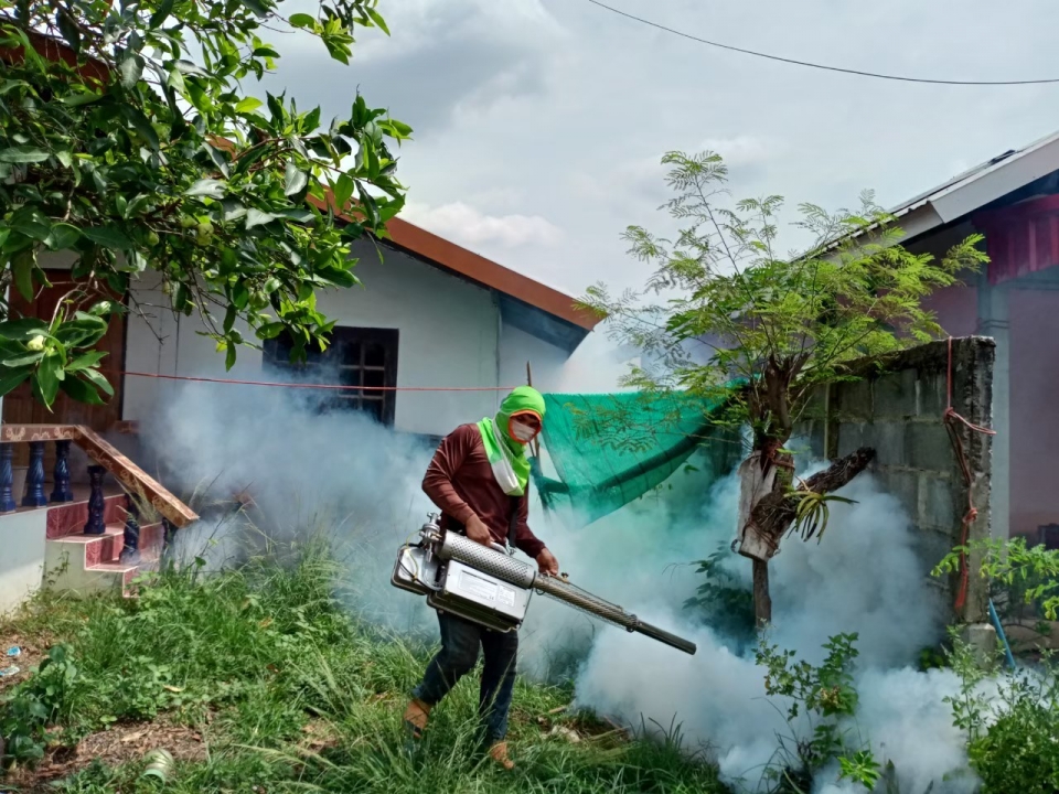 ดำเนินกิจกรรมโครงการป้องกันโรคไข้เลือดออก ประจำปีงบประมาณ พ.ศ.2564 โดยฉีดพ่นหมอกควันกำจัดยุงลายเพื่อป้องกันการระบาดของโรคไข้เลือด พร้อมให้คำแนะนำในการป้องกันโรคที่เกิดจากยุงลายในพื้นที่