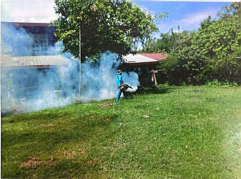 โดยฉีดพ่นหมอกควันกำจัดยุงลายเพื่อป้องกันการระบาดของโรคไข้เลือด พร้อมให้คำแนะนำในการป้องกันโรคที่เกิดจากยุงลายในพื้นที่ ณ หมู่ 3 บ้านใหม่พัฒนา
