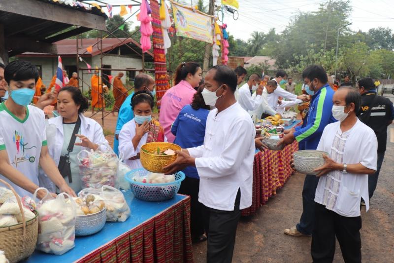 เวลา 07.00 น. ร่วมทำบุญตักบาตร ถนนสายวัฒนธรรม หมู่ 4 บ้านทันเวลาสามัคคี