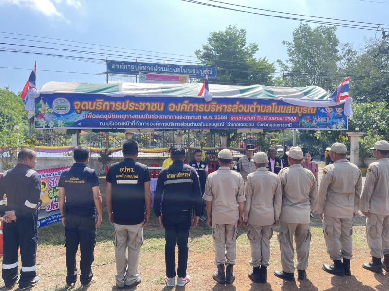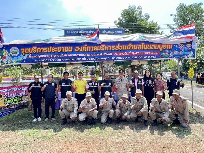 กิจกรรมจุดบริการประชาชน อบต.โนนสมบูรณ์ เพื่อลดอุบัติเหตุทางถนนในช่วงเทศกาลสงกรานต์ พ.ศ. 2568 ระหว่างวันที่ 11-17 เม.ย.2568