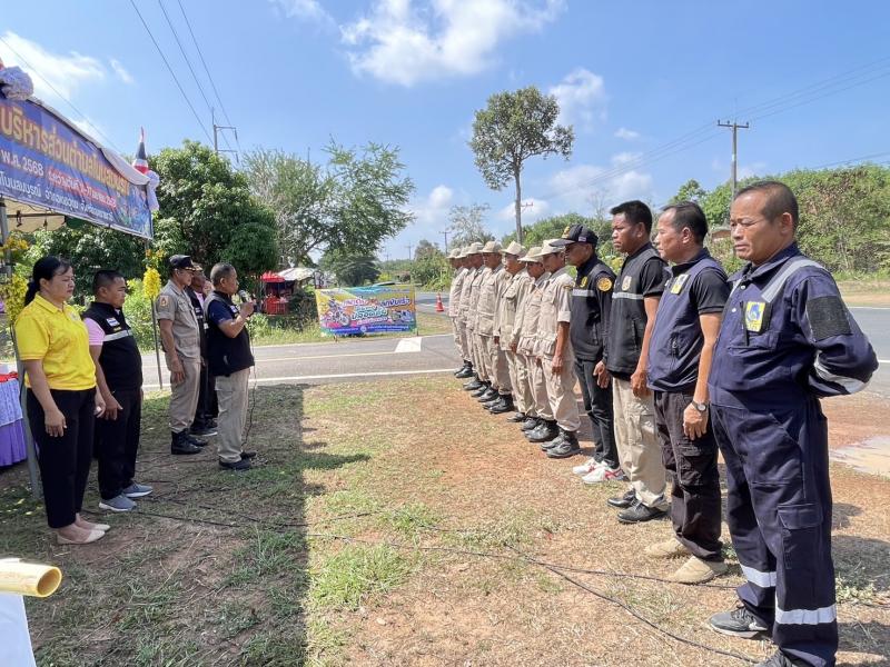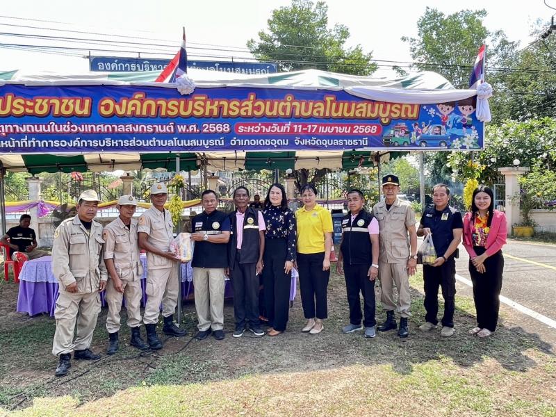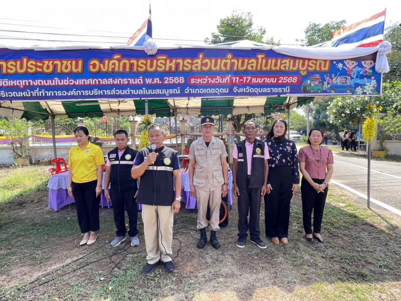 นายกองค์การบริหารส่วนตำบลโนนสมบูรณ์ ประธานสภาอบต.โนนสมบูรณ์ นายบัวกรรณ์ วรรณริโก รองนายก อบต. ปลัด อบต. รองปลัด อบต. พร้อมด้วยหัวหน้าส่วนราชการ พนักงานส่วนตำบล พนักงานจ้างตามภารกิจ พนักงานจ้างทั่วไป จัดกิจกรรมตั้งจุดบริการประชาชน องค์การบริหารส่วนตำบลโนนสมบูรณ์ เพื่อลดอุบัติเหตุทางถนนในช่วงเทศกาลสงกรานต์ พ.ศ.2568 ระหว่างวันที่ 11-17