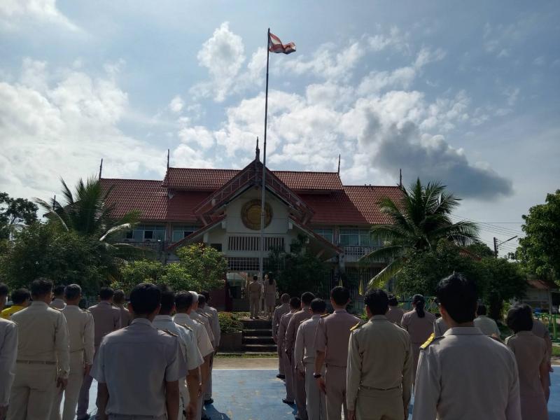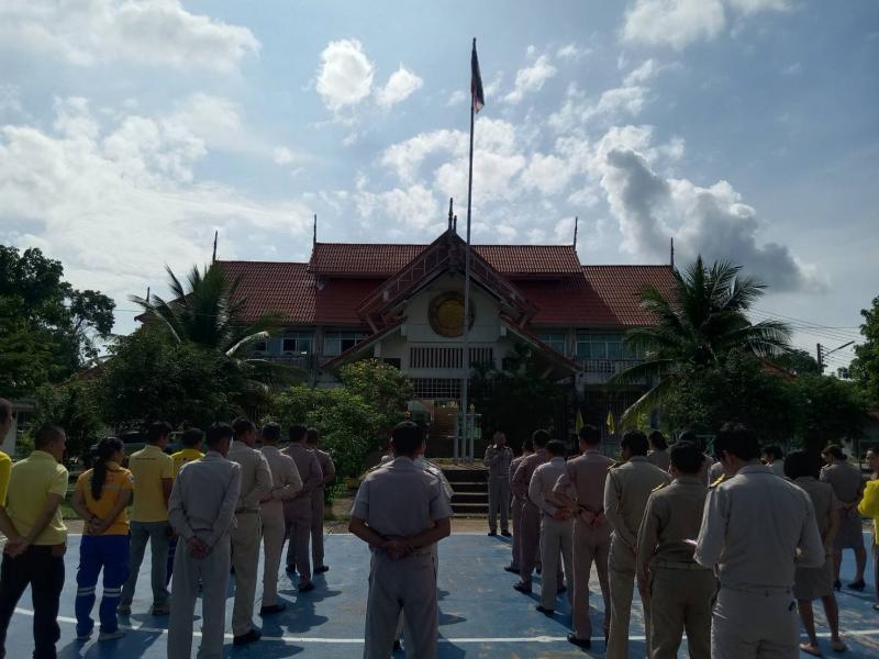 และเจ้าหน้าที่ ร่วมกิจกรรมเข้าแถวเคารพธงชาติ ณ องค์การบริหารส่วนตำบลโนนสมบูรณ์ อำเภอเดชอุดม จังหวัดอุบลราชธานี