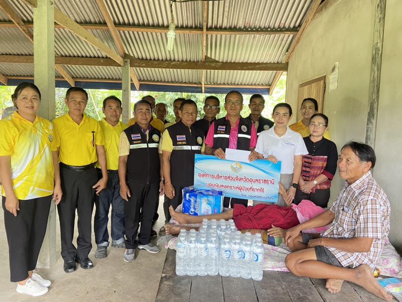 นายคำภา เชื้อคง เลขานุการนายกองค์การบริหารส่วนจังหวัดอุบลราชธานี นางสาวปริมกรณ์ ศรีวงห์รักษ์ ผู้อำนวยการกองสวัสดิการสังคม และคณะเจ้าหน้าที่กองสวัสดิการสังคม และนางณัฐชา จินตะเวช พร้อมด้วยนายบุญหนัก ทำนุ นายกองค์การบริหารส่วนตำบลโนนสมบูรณ์ คณะผู้บริหาร ประธานสภาสมาชิกสภา ปลัด อบต. รองปลัด อบต. หัวหน้าสำนักปลัด คณะเจ้าหน้าที่งานสวัสดิการสังคมและสังคมสงเคราะห์ สำนักปลัด องค์การบริหารส่วนตำบลโนนสมบูรณ์ และผู้นำหมู่ 2 บ้านนาแก ตำบลโนนสมบูรณ์ อำเภอเดชอุดม จังหวัดอุบลราชธานี มอบเงินสงเคราะห์ผู้ป่วยยากไร้ให้กับนางวิไล บำรุงศิลป์ ผู้ป่วยติดเตียงจำนวน 700 บาท