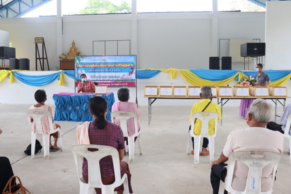 จัดกิจกรรมโครงการส่งเสริมและพัฒนาคุณภาพชีวิตผู้สูงอายุ ประจำปีงบประมาณ พ.ศ. 2564 มอบเกียรติบัตรแก่ผู้สูงอายุที่บำเพ็ญประโยชน์ 3 ประเภท ได้แก่