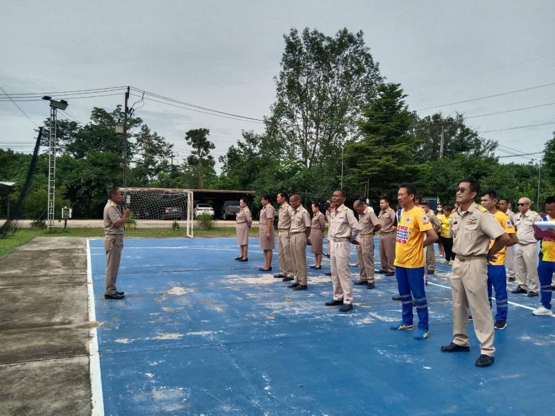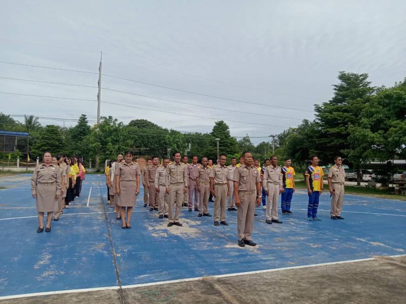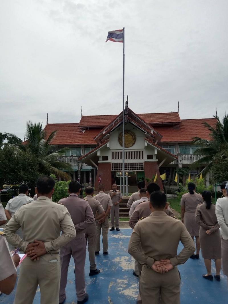 หัวหน้าส่วนราชการ ผู้อำนวยการกอง พนักงานส่วนตำบล และเจ้าหน้าที่ ร่วมกิจกรรมเข้าแถวเคารพธงชาติ
