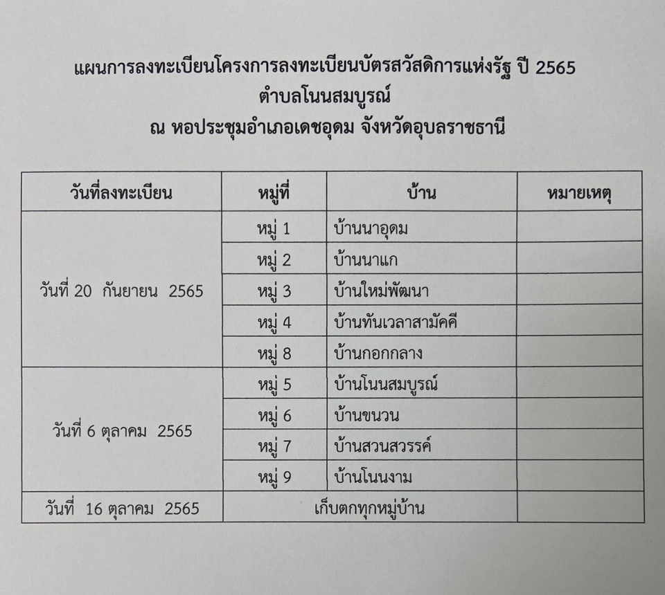 แผนการลงทะเบียนโครงการลงทะเบียนบัตรสวัสดิการแห่งรัฐ ปี 2565
