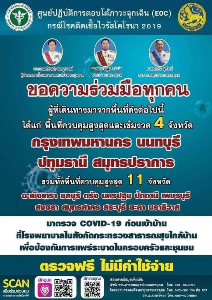 แจ้งประชาชนที่เดินทางมาจากพื้นที่เสี่ยง จะต้องได้ตรวจหาเชื้อ