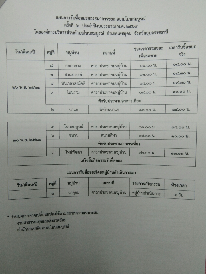 รายละเอียด : แจ้งประชาสัมพันธ์การรับซื้อขยะ ครั้งที่ 2/2564 ของกองทุนธนาคารขยะ อบต.โนนสมบูรณ์