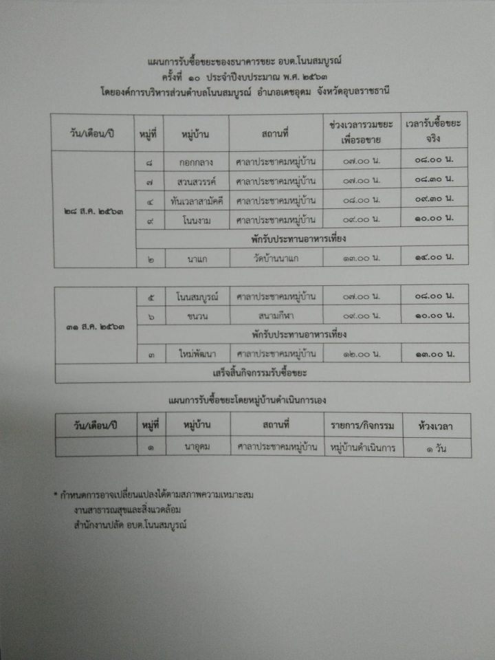 ประชาสัมพันธ์การรับซื้อขยะ ครั้งที่ 10/2563 ของกองทุนธนาคารขยะ อบต.โนนสมบูรณ์