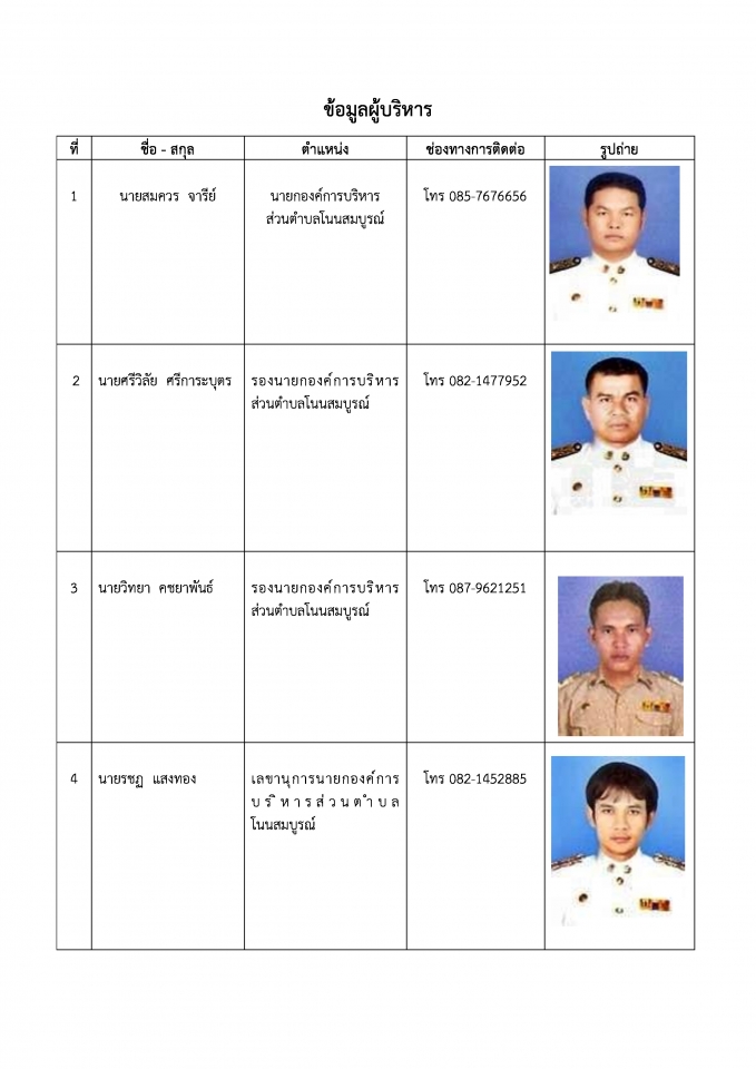 ประชาสัมพันธ์ ช่องทางการติดต่อผู้บริหารองค์การบริหารส่วนตำบลโนนสมบูรณ์
