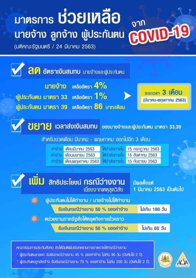มาตรการให้ความช่วยเหลือเยียวยา นายจ้าง ลูกจ้าง ผู้ประกันตน กรณีได้รับผลกระทบจากเชื้อไวรัสโคโรนาสายพันธุ์ใหม่ (โควิด-19)