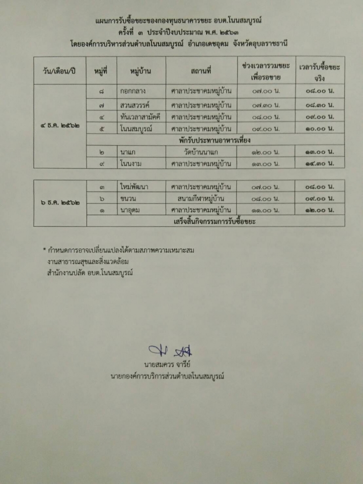 แจ้งประชาสัมพันธ์การรับซื้อขยะ ครั้งที่ 3/2563 ของกองทุนธนาคารขยะ