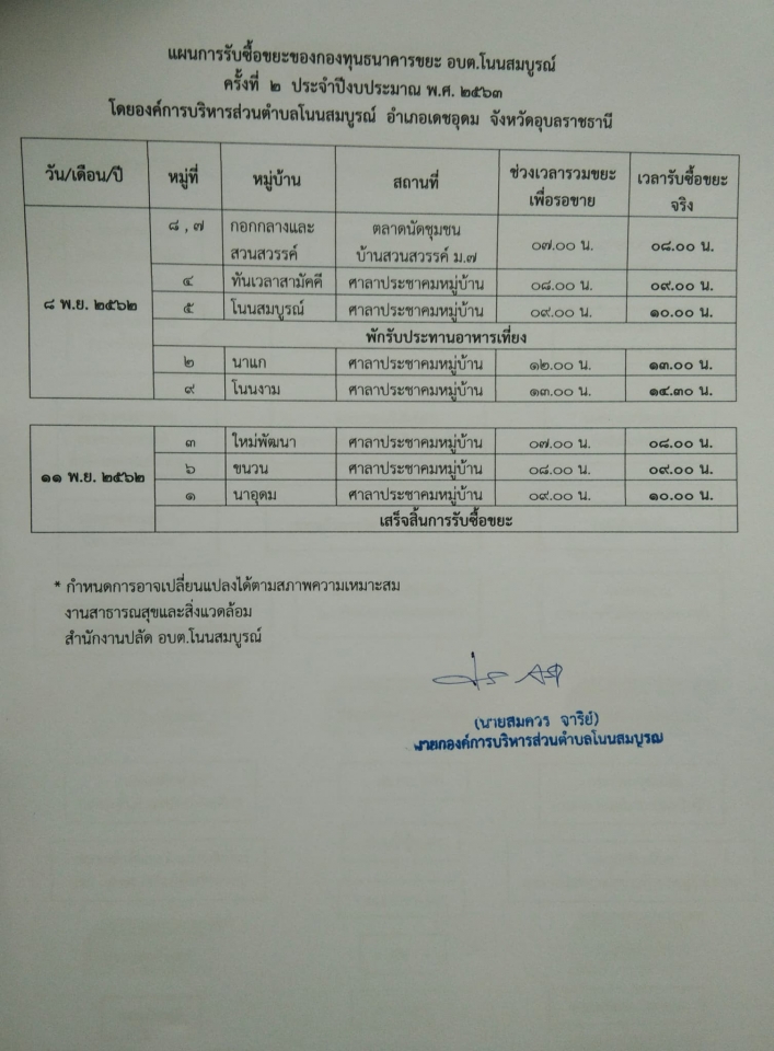 รายละเอียด : แจ้งประชาสัมพันธ์การรับซื้อขยะ ครั้งที่ 2/2563 ของกองทุนธนาคารขยะ อบต.โนนสมบูรณ์