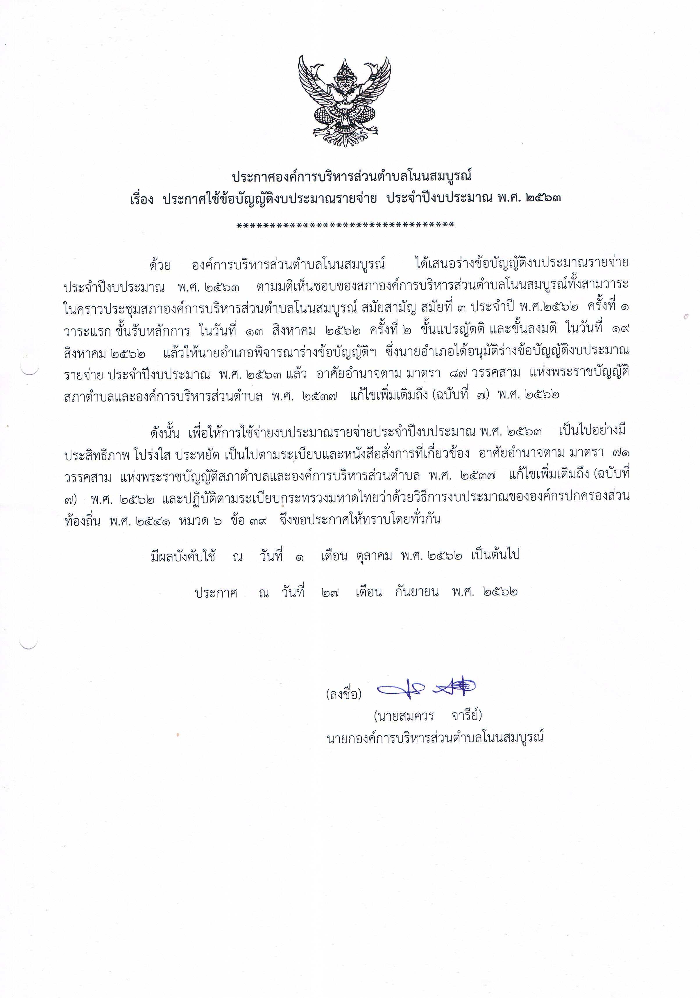 ประกาศใช้ข้อบัญญัติงบประมาณรายจ่าย ประจำปีงบประมาณ พ.ศ.2563