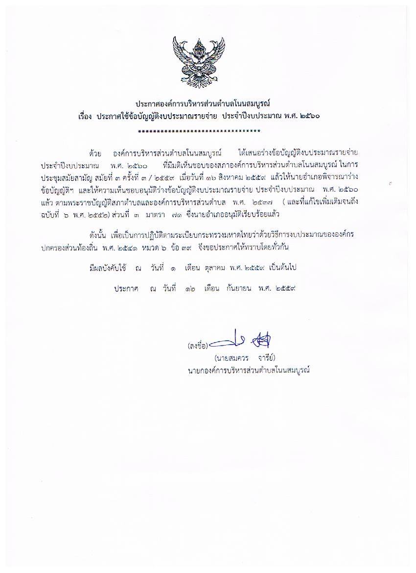 ประกาศใช้ประราชบัญญัติงบประมาณรายจ่าย ประจำปีงบประมาณ พ.ศ. 2560