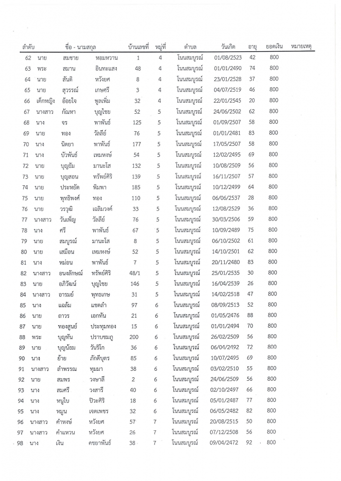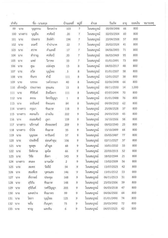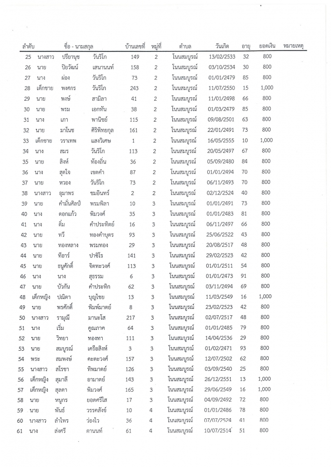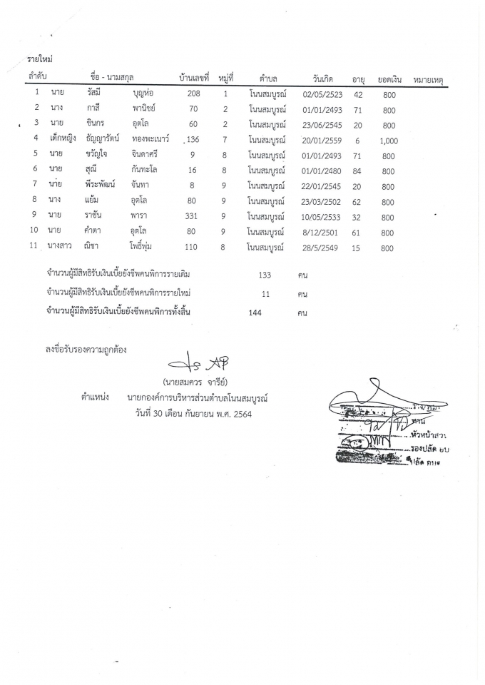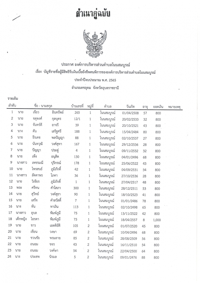 ประกาศ องค์การบริหารส่วนตำบลโนนสมบูรณ์ เรื่อง บัญชีรายชื่อผู้มีสิทธิรับเงินเบี้ยยังชีพคนพิการ ปี2565