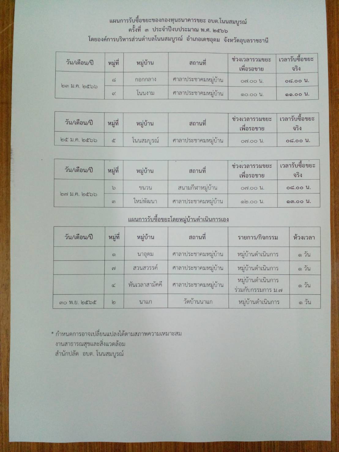 รายละเอียด : แจ้งประชาสัมพันธ์การรับซื้อขยะ ครั้งที่ 3/2566 ของกองทุนธนาคารขยะ อบต.โนนสมบูรณ์