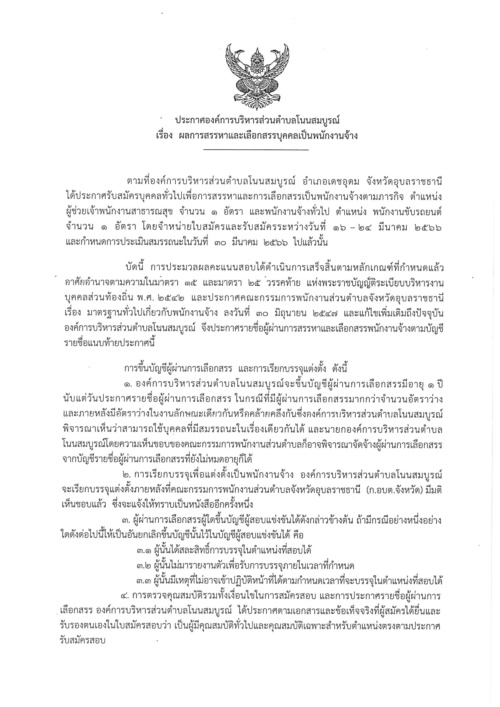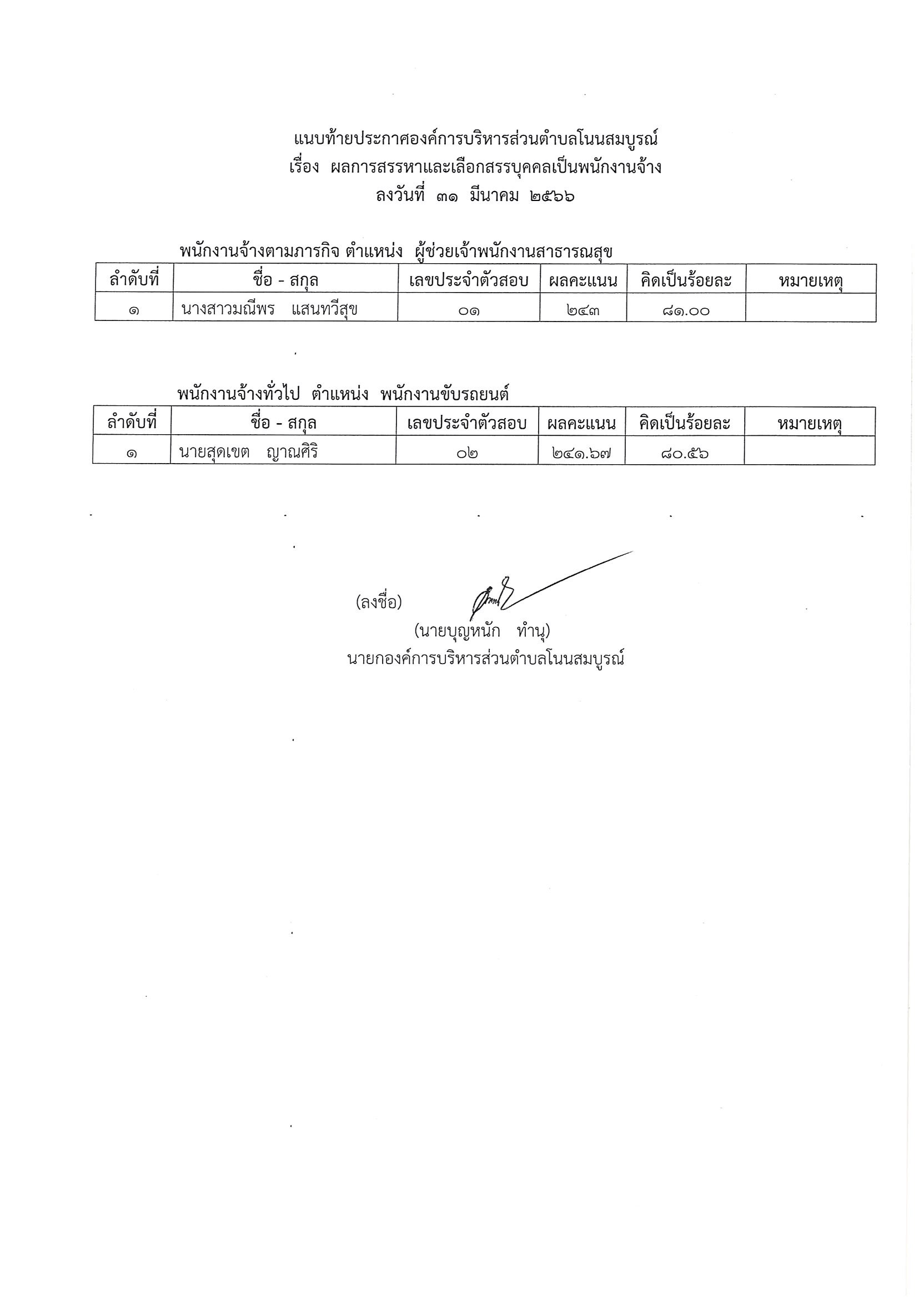 ประกาศ เรื่อง ผลการสรรหาและเลือกสรรบุคคลเป็นพนักงานจ้าง