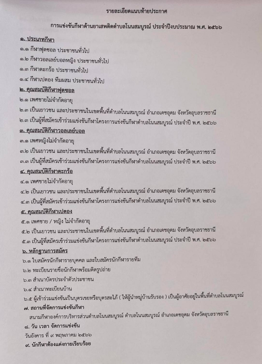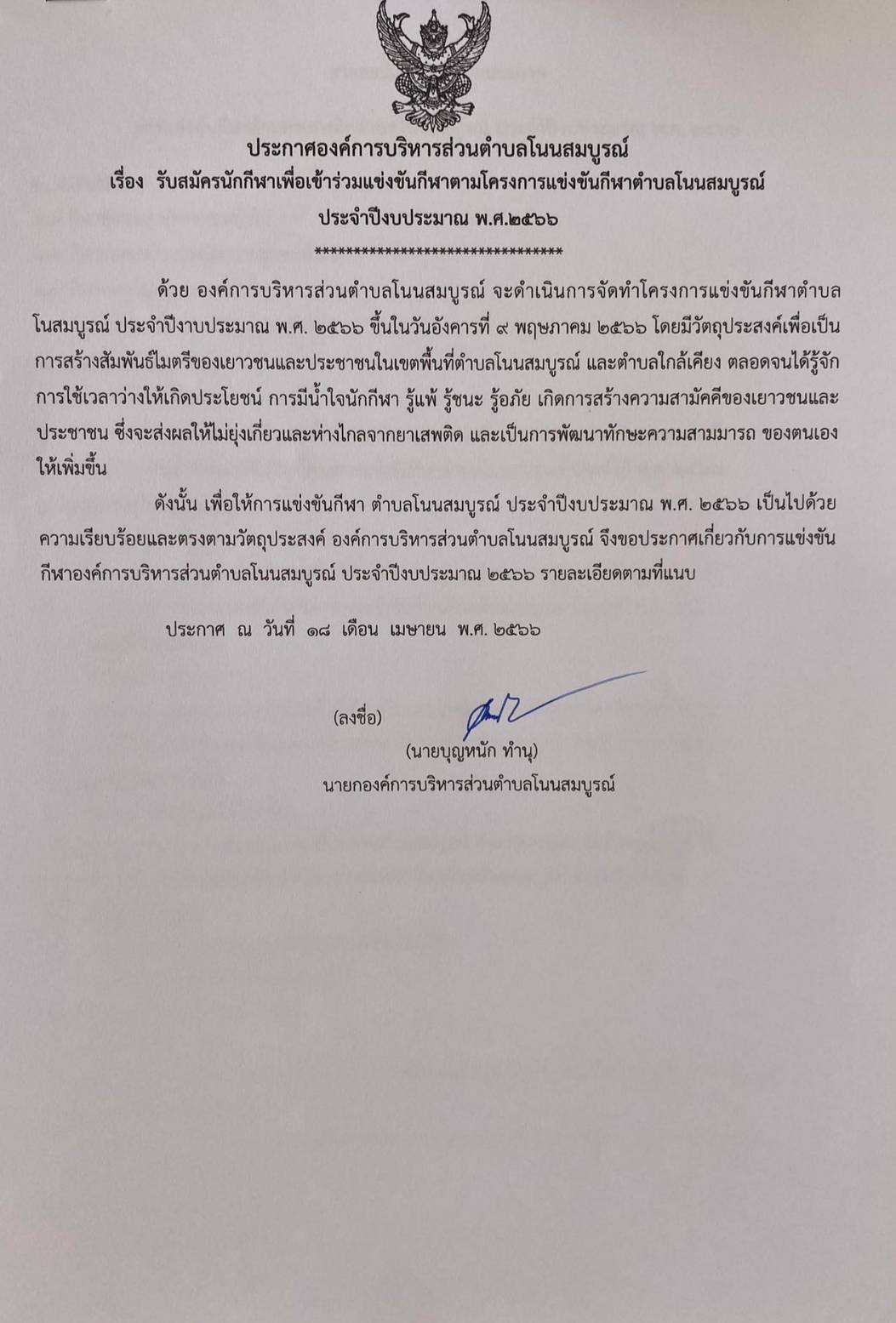 ประกาศองค์การบริหารส่วนตำบลโนนสมบูรณ์ เรื่อง รับสมัครนักกีฬาเพื่อเข้าร่วมแข่งขันกีฬาตามโครงการแข่งขันกีฬาตำบลโนนสมบูรณ์ ประจำปีงบประมาณ พ.ศ.2566