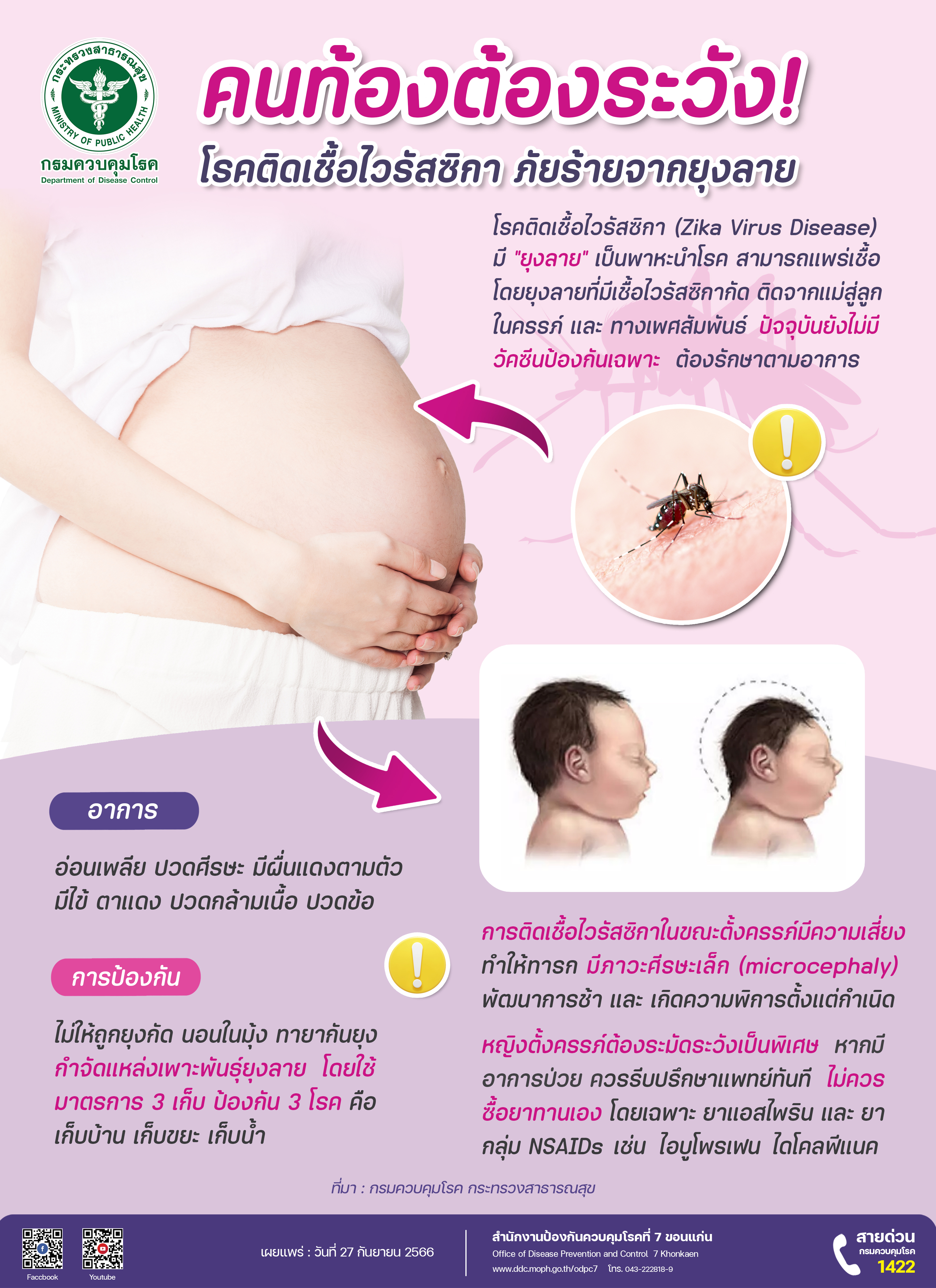 ประชาสัมพันธ์สือความรู้เกี่ยวกับโรคเชื้อไวรัสซิกาและการป้องกันตนเองจากโรคไข้เลือดออกในกลุ่มหญิงตั้งครรภ์