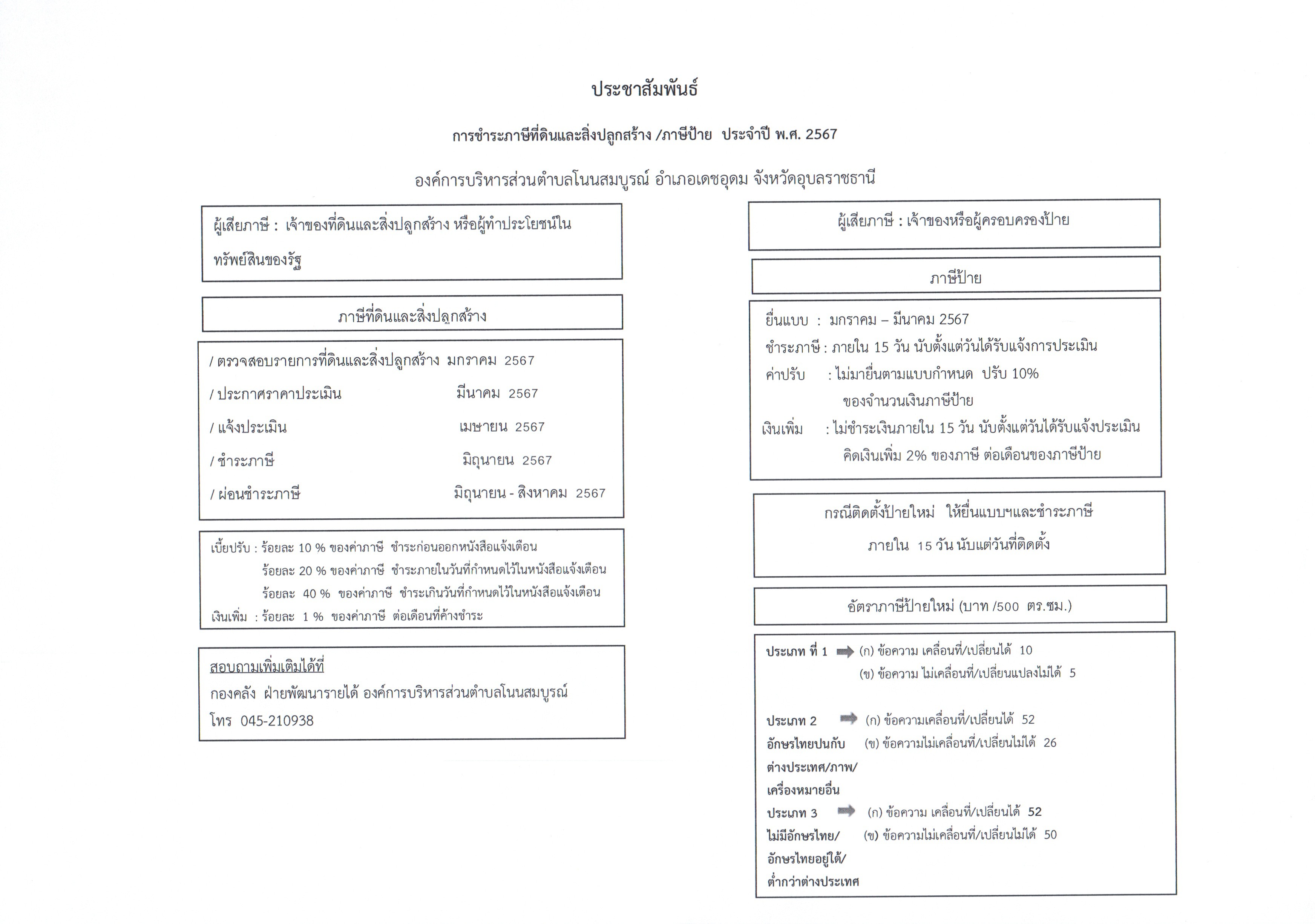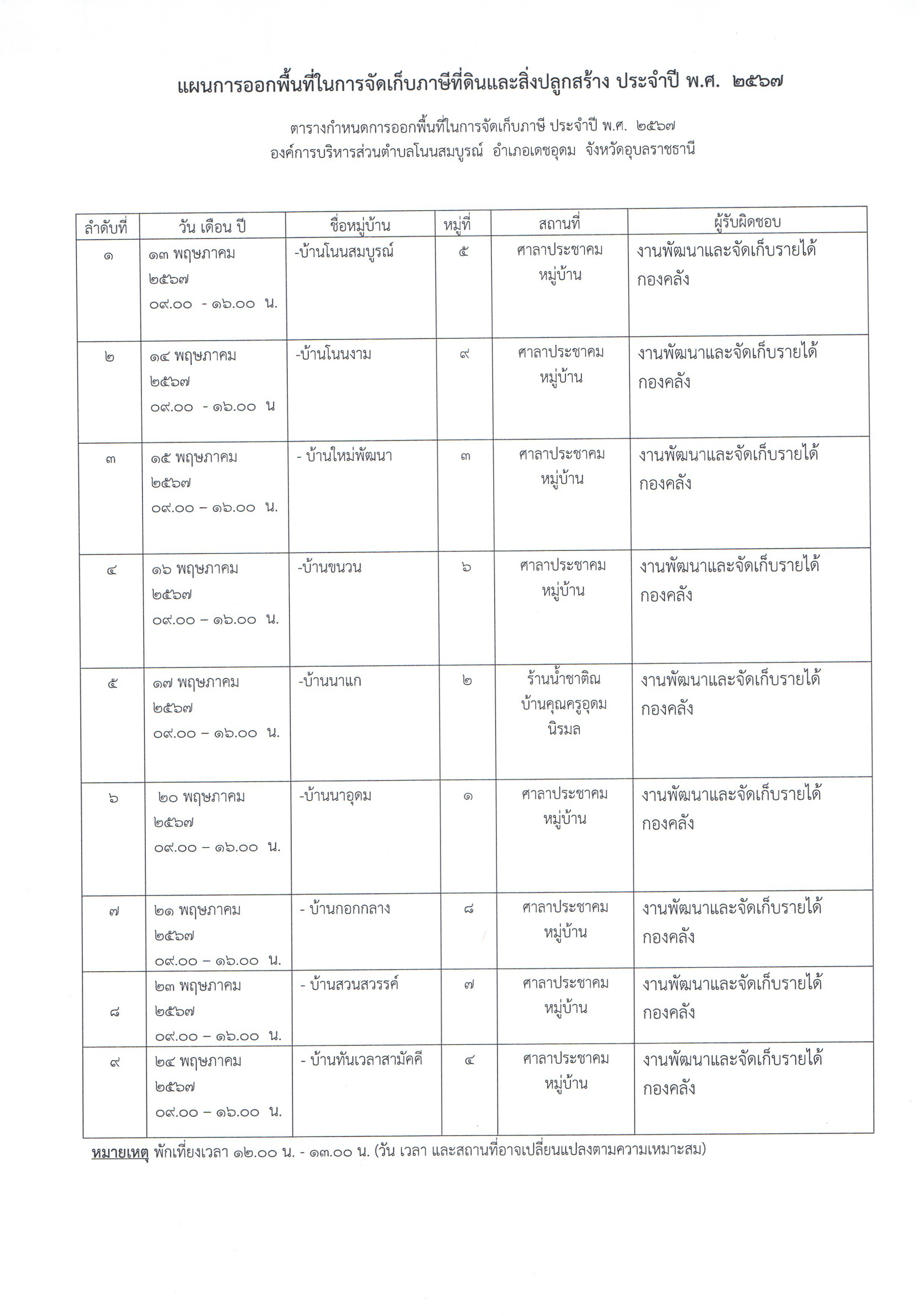 ชื่อเรื่อง : ประชาสัมพันธ์แผนการออกพื้นที่ในการจัดเก็บภาษีที่ดินและสิ่งปลูกสร้าง ประจำปี พ.ศ. 2567