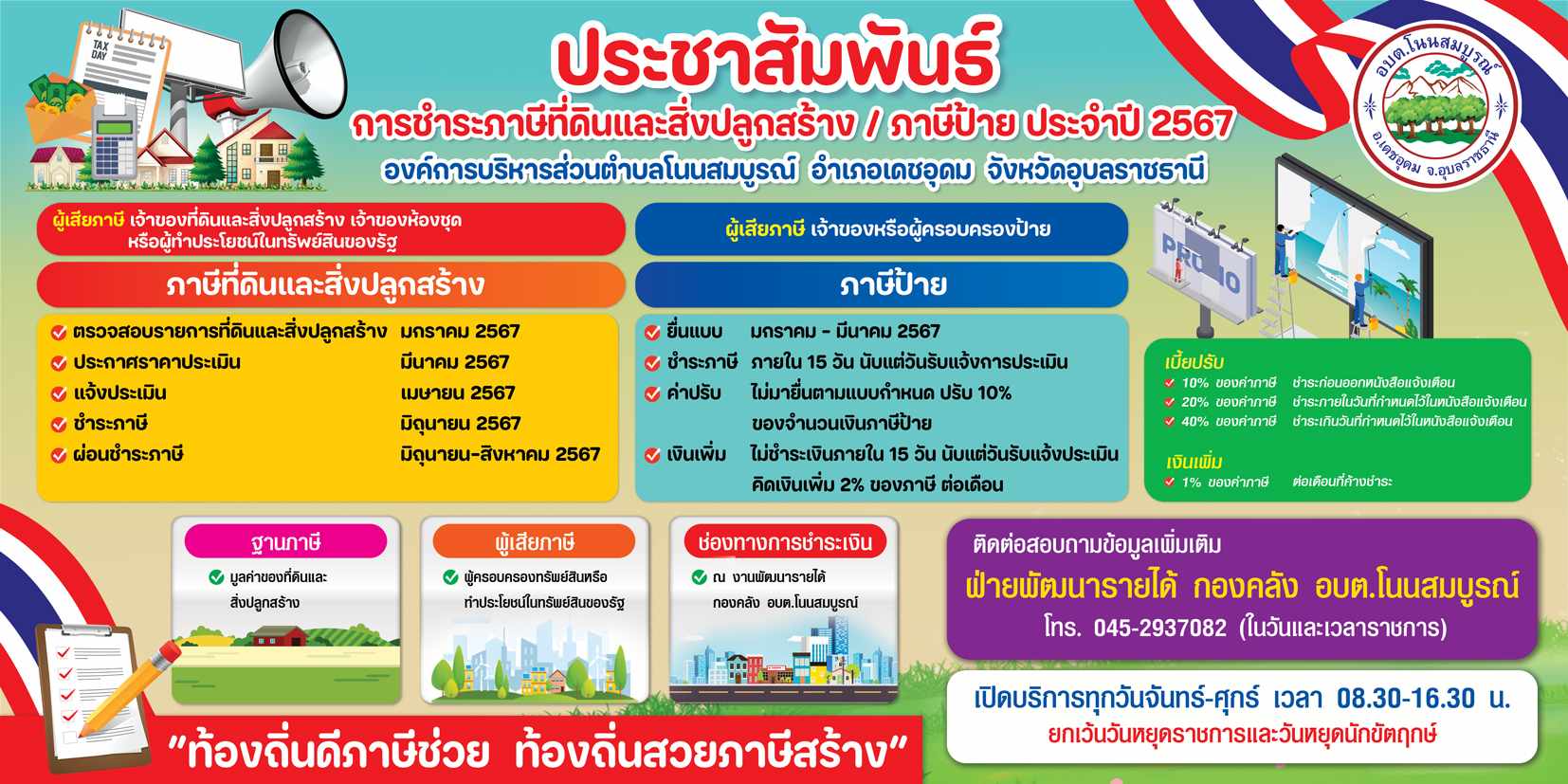ชื่อเรื่อง : ประชาสัมพันธ์การรับชำระภาษีที่ดินเเละสิ่งปลุกสร้าง ประจำปี พ.ศ. 2567