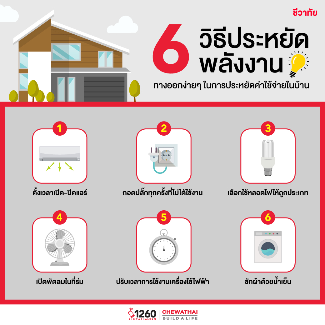 1. ปิดเครื่องใช้ไฟฟ้าทุกครั้งที่เลิกใช้งาน และเลือกอุปกรณ์ไฟฟ้าที่มีฉลากเบอร์ 5 ควรใช้สีอ่อนตกแต่ง อาคารเพื่อลดอุณหภูมิความร้อนจากภายนอกอาคาร