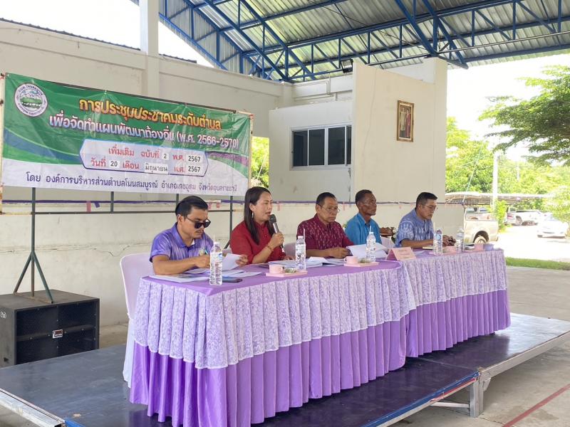 ประชุมคณะกรรมการพัฒนาร่วมกับประชาคมระดับตำบลโนนสมบูรณ์ เพื่อพิจารณาเห็นชอบร่างแผนพัฒนาท้องถิ่น (พ.ศ.2566-2570) เพิ่มเติม ฉบับที่ 2 ประจำปี พ.ศ.2567