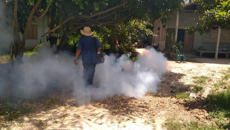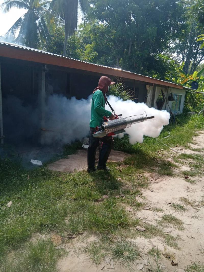 กิจกรรม : ฉีดพ่นหมอกควัน สำรวจลูกน้ำยุงลายทุกหลังคาเรือน ปรับปรุงสิ่งแวดล้อมในการกำจัดแหล่งเพาะพันธุ์ยุงลาย