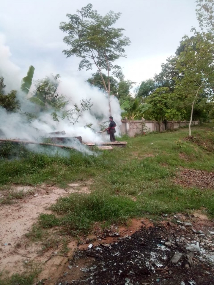 ดำเนินกิจกรรมโครงการป้องกันโรคไข้เลือดออก ประจำปีงบประมาณ พ.ศ.2564 โดยฉีดพ่นหมอกควันกำจัดยุงลายเพื่อป้องกันการระบาดของโรคไข้เลือด พร้อมให้คำแนะนำในการป้องกันโรคที่เกิดจากยุงลายในพื้นที่