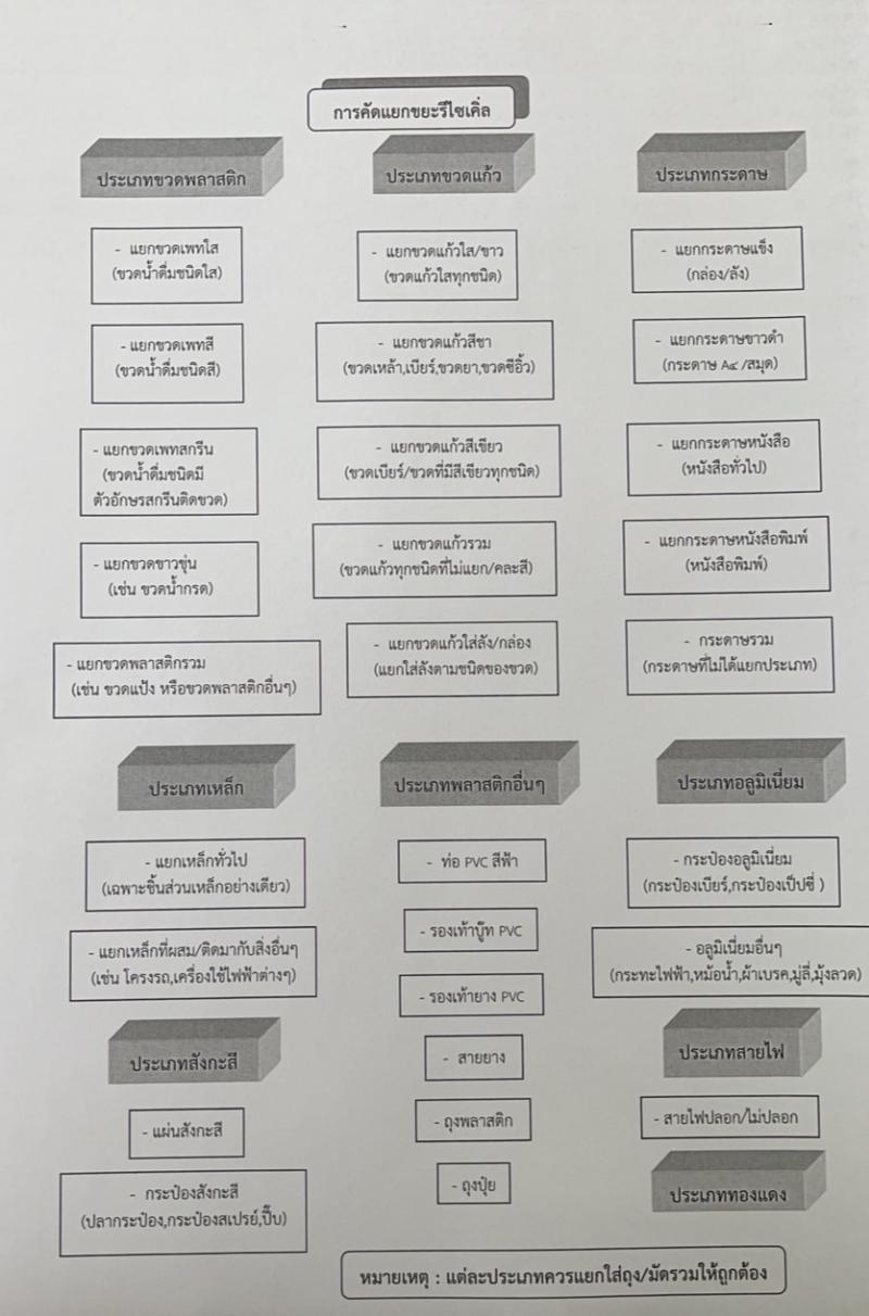 3.มีการคัดแยกในครัวเรือนอย่างน้อย 5 ประเภท ได้แก่ อินทรีย์ รีไซเคิล อันตราย ทั่วไป และติดเชื้อ