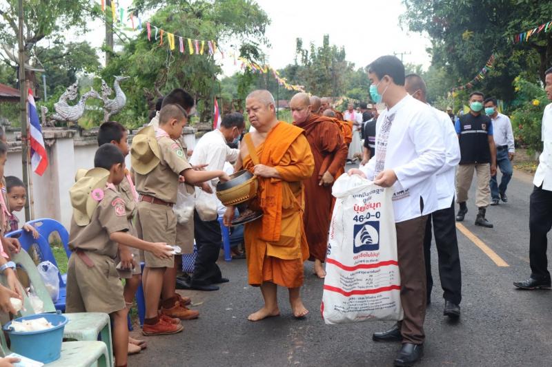 เวลา 07.00 น. ร่วมทำบุญตักบาตร ถนนสายวัฒนธรรม หมู่ 4 บ้านทันเวลาสามัคคี