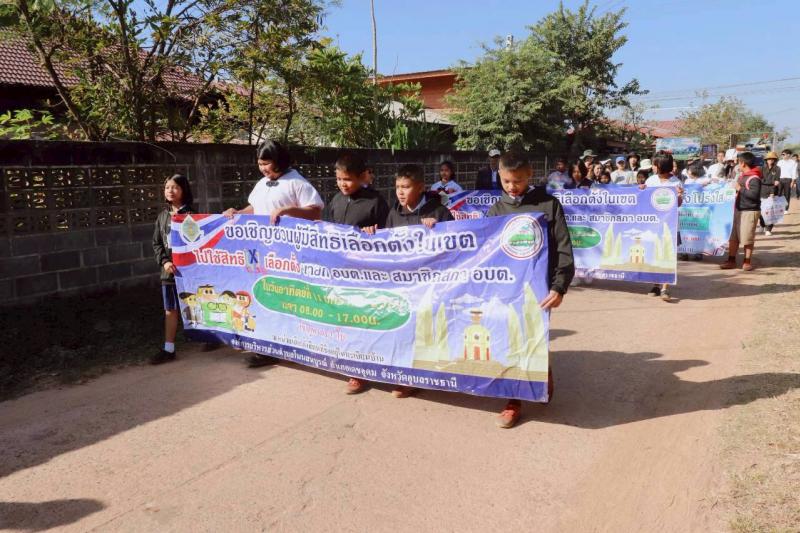 กิจกรรมเดินรณรงค์ ณ บ้านนาอุดม หมู่ 1 ขอเชิญชวนประชาชนออกมาใช้สิทธิในการเลือกตั้งนายกองค์การบริหารส่วนตำบลและสมาชิกสภาองค์การบริหารส่วนตำบล