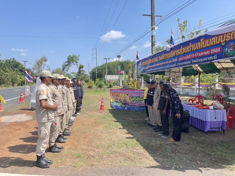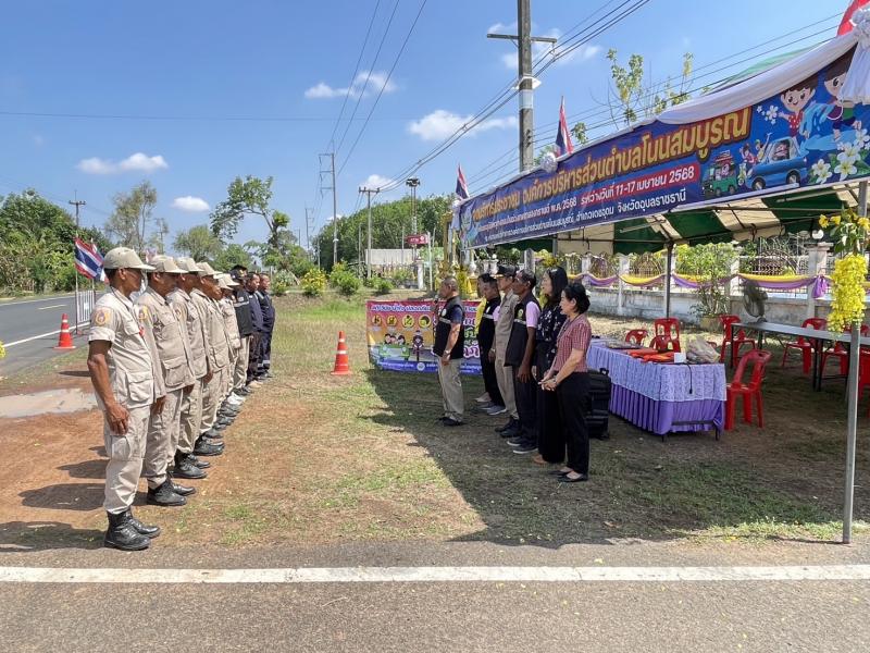 นายกองค์การบริหารส่วนตำบลโนนสมบูรณ์ ประธานสภาอบต.โนนสมบูรณ์ นายบัวกรรณ์ วรรณริโก รองนายก อบต. ปลัด อบต. รองปลัด อบต. พร้อมด้วยหัวหน้าส่วนราชการ พนักงานส่วนตำบล พนักงานจ้างตามภารกิจ พนักงานจ้างทั่วไป จัดกิจกรรมตั้งจุดบริการประชาชน องค์การบริหารส่วนตำบลโนนสมบูรณ์ เพื่อลดอุบัติเหตุทางถนนในช่วงเทศกาลสงกรานต์ พ.ศ.2568 ระหว่างวันที่ 11-17