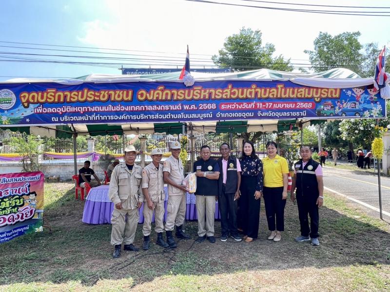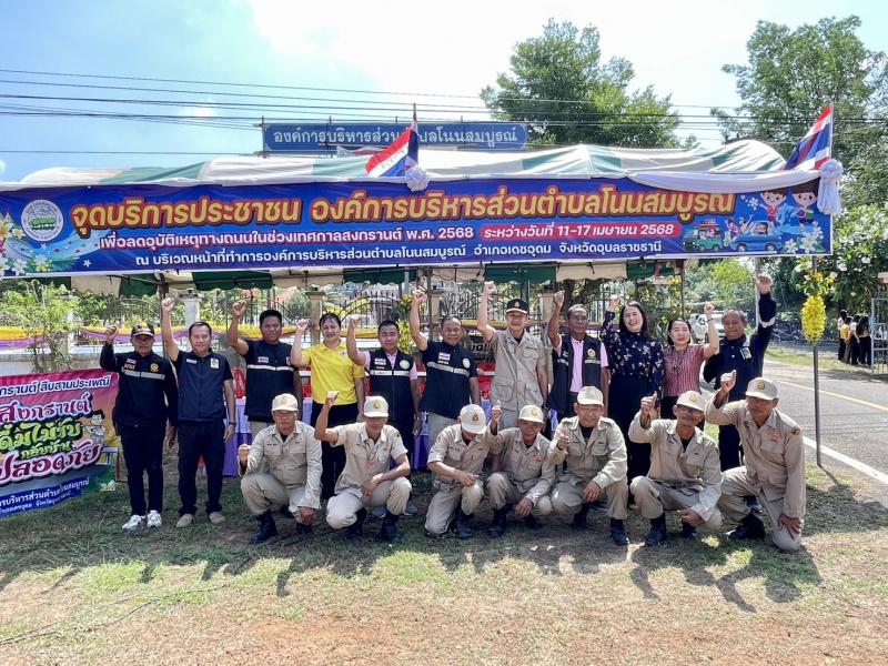 กิจกรรมจุดบริการประชาชน อบต.โนนสมบูรณ์ เพื่อลดอุบัติเหตุทางถนนในช่วงเทศกาลสงกรานต์ พ.ศ. 2568 ระหว่างวันที่ 11-17 เม.ย.2568