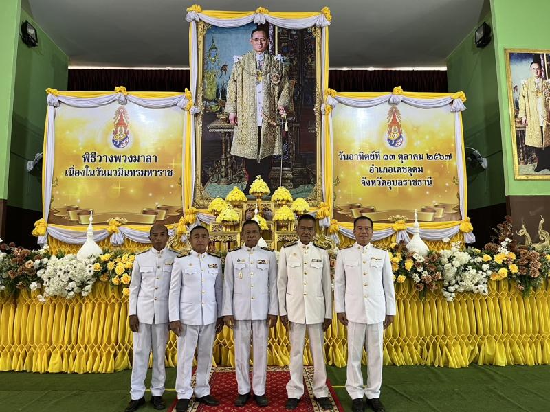 ร่วมพิธีทำบุญตักบาตรถวายพระราชกุศล ณ วัดเวตวันวิทยาราม เวลา 09.00 น.พิธีวางพวงมาลา ณ หอประชุมอำเภอเดชอุดม