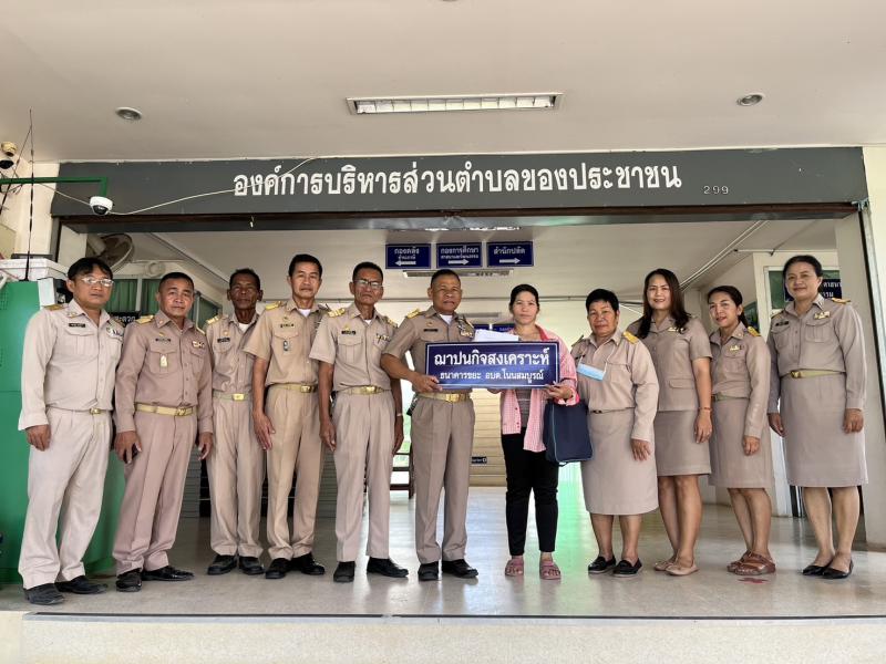 มอบโดย นายบุญหนัก ทำนุ นายก อบต.โนนสมบูรณ์ พร้อมด้วย คณะผู้บริหาร ,ประธานสภาฯ ,ปลัด อบต. ,รองปลัด อบต. หัวหน้าส่วนราชการและพนักส่วนตำบล อบต.โนนสมบูรณ์