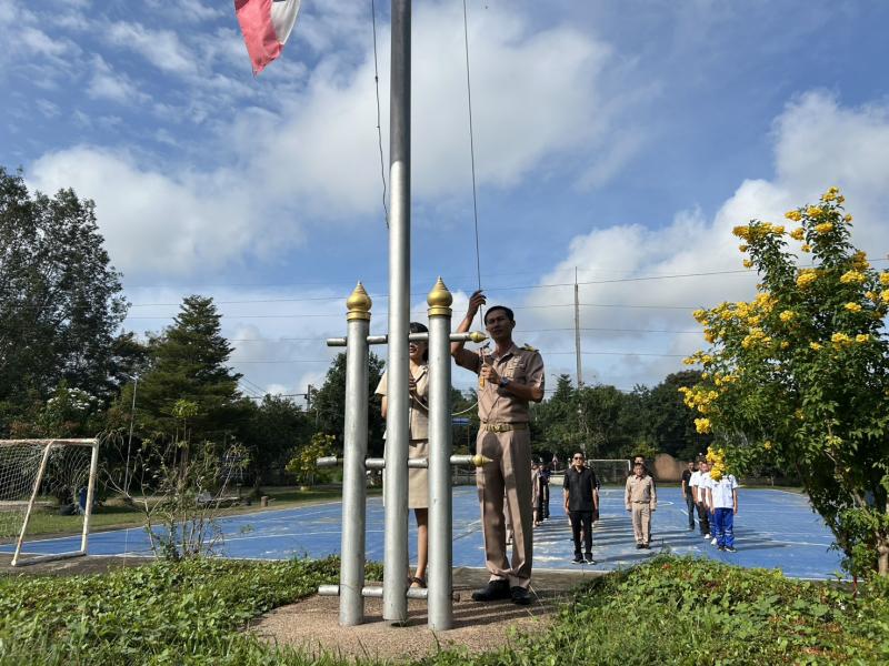 ร่วมกิจกรรมเข้าแถวเคารพธงชาติ ณ องค์การบริหารส่วนตำบลโนนสมบูรณ์ อำเภอเดชอุดม จังหวัดอุบลราชธานี