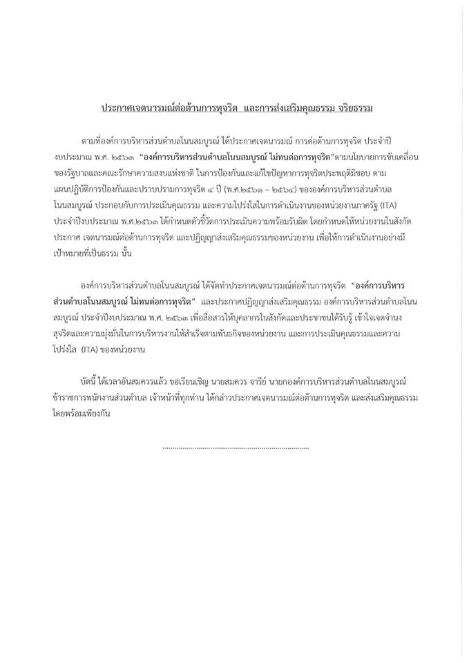 ประกาศเจตนารมร์การต่อต้านการทุจริต ประจำปีงบประมาณ พ.ศ.2563