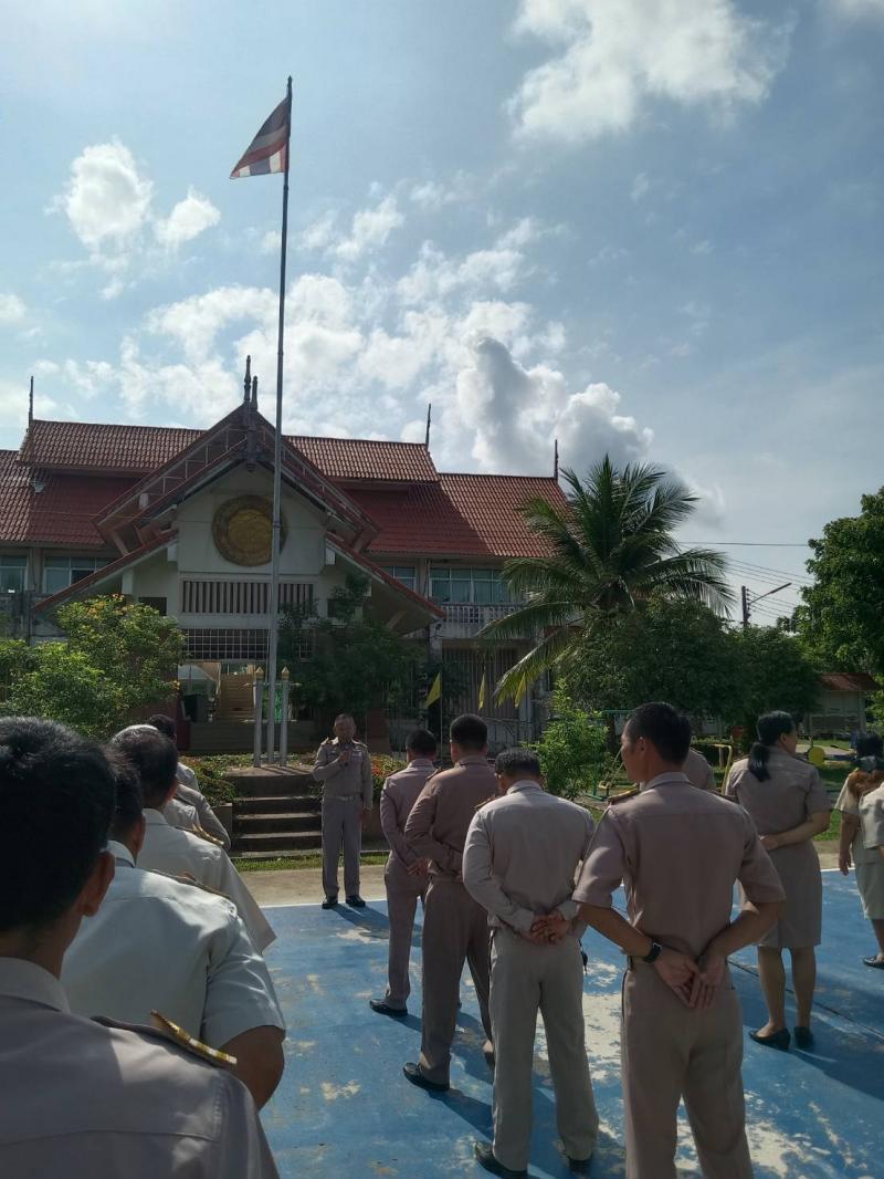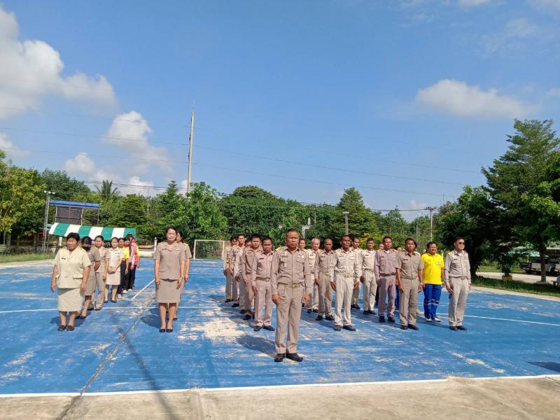 และเจ้าหน้าที่ ร่วมกิจกรรมเข้าแถวเคารพธงชาติ ณ องค์การบริหารส่วนตำบลโนนสมบูรณ์ อำเภอเดชอุดม จังหวัดอุบลราชธานี