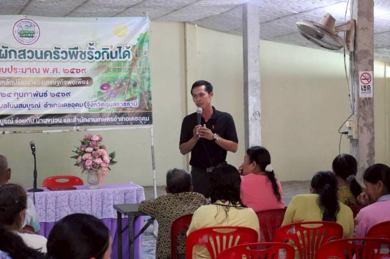 วันที่ 24 กุมภาพันธ์ 2569 เวลา 08.30 น. ด้านองค์การบริหารส่วนตำบลโนนสมบูรณ์ อำเภอเดชอุดม จังหวัดอุบลราชธานี นำโดย นายบุญหนัก ทำนุ นายกองค์การบริหารส่วนตำบลโนนสมบูรณ์และคณะผู้บริหารทุกท่านขององค์การบริหารส่วนตำบลโนนสมบูรณ์ พันจ่าเอก ตรีพงศ์ เสาร์แก้ว ปลัดองค์การบริหารส่วนตำบลโนนสมบูรณ์ นายรุ่งศักดา ศรมณี รองปลัดองค์การบริหารส่วนตำบลโนนสมบูรณ์ หัวหน้าสำนักปลัด/ผอ กอง/ข้าราชการ/พนักงานทุกท่าน ได้เข้าร่วมและจัดกิจกรรมจัดทำโครงการปลูกผักพืชรั้วกินได้ ประจำปีงบประมาณ 2569 ณ ศาลาประชาคม หมู่ที่ 6 ตำบลโนนสมบูรณ์ อำเภอเดชอุดม จังหวัดอุบลราชธานี โดยมีวิทยากร นางสาวอารยา สานันต์ เป็นวิทยากรในโครงการปลูกผักพืชรั้วกินได้ และมีชาวบ้าน บ้านขนวน หมู่ที่ 6 เข้าร่วม ค่ะ/ครับ