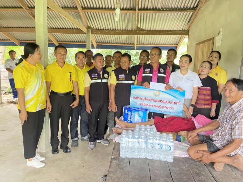 นายคำภา เชื้อคง เลขานุการนายกองค์การบริหารส่วนจังหวัดอุบลราชธานี นางสาวปริมกรณ์ ศรีวงห์รักษ์ ผู้อำนวยการกองสวัสดิการสังคม และคณะเจ้าหน้าที่กองสวัสดิการสังคม และนางณัฐชา จินตะเวช พร้อมด้วยนายบุญหนัก ทำนุ นายกองค์การบริหารส่วนตำบลโนนสมบูรณ์ คณะผู้บริหาร ประธานสภาสมาชิกสภา ปลัด อบต. รองปลัด อบต. หัวหน้าสำนักปลัด คณะเจ้าหน้าที่งานสวัสดิการสังคมและสังคมสงเคราะห์ สำนักปลัด องค์การบริหารส่วนตำบลโนนสมบูรณ์ และผู้นำหมู่ 2 บ้านนาแก ตำบลโนนสมบูรณ์ อำเภอเดชอุดม จังหวัดอุบลราชธานี มอบเงินสงเคราะห์ผู้ป่วยยากไร้ให้กับนางวิไล บำรุงศิลป์ ผู้ป่วยติดเตียงจำนวน 700 บาท