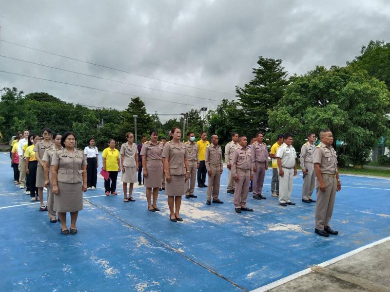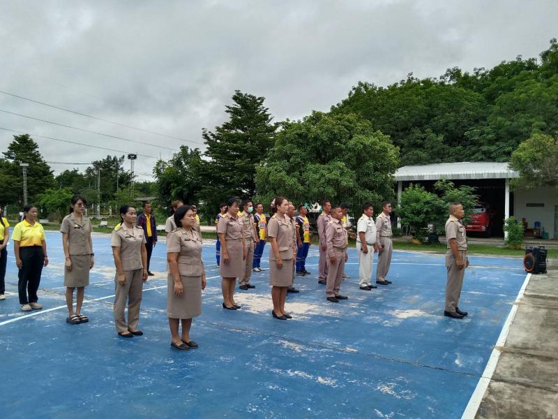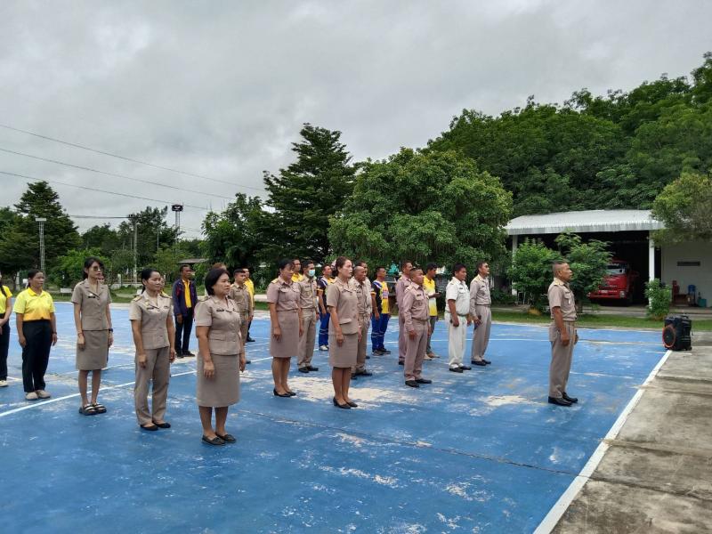 หัวหน้าส่วนราชการ ผู้อำนวยการกอง พนักงานส่วนตำบล และเจ้าหน้าที่ ร่วมกิจกรรมเข้าแถวเคารพธงชาติ