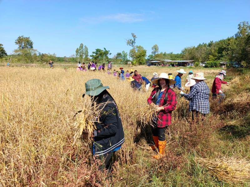 ร่วมจัดกิจกรรมโครงการส่งเสริมอนุรักษ์ภูมิปัญญาวัฒนธรรมท้องถิ่น (การลงแขกเกี่ยวข้าว) ประจำปีงบประมาณ 2566