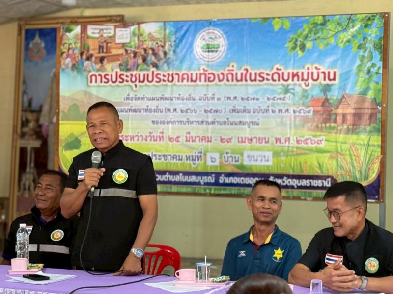 ประชุมประชาคมท้องถิ่นในระดับหมู่บ้านฯ ณ ศาลาประชาคม หมู่ที่ 6 บ้านขนวน ตำบลโนนสมบูรณ์ อำเภอเดชอุดม จังหวัดอุบลราชธานี