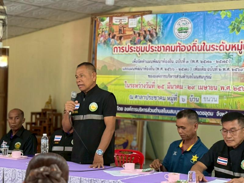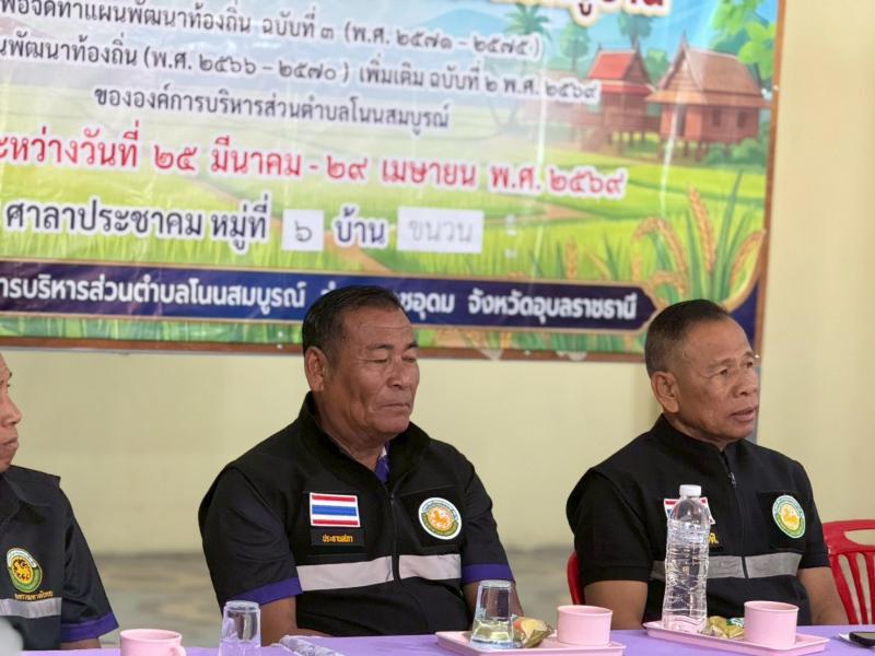 วันอังคาร ที่ 21 เดือน เมษายน พ.ศ 2569 เวลา 08.30 น. ด้านองค์การบริหารส่วนตำบลโนนสมบูรณ์ อำเภอเดชอุดม จังหวัดอุบลราชธานี นำโดย . -นายบุญหนัก ทำนุ นายกองค์การบริหารส่วนตำบลโนนสมบูรณ์ พร้อมคณะผู้บริหารทุกท่าน -นายสมยง คำภาปัต /สมาชิกสภาทุกท่าน ร่วมกับ -พันจ่าเอกตรีพงศ์ เสาร์แก้ว ปลัดองค์การบริหารส่วนตำบลโนนสมบูรณ์ รองปลัด/หัวหน้าสำนักปลัด/ผอ กอง/ข้าราชการ/พนักงานตำบลโนนสมบูรณ์/นายรุ่ง ทินมาตร ผู้ใหญ่บ้านหมู่ที่ 6 และ ชาวบ้าน บ้านขนวน หมู่ที่ 6 ทุกท่าน .ได้ประชุมประชาคมท้องถิ่นในระดับหมู่บ้านฯ ณ ศาลาประชาคม หมู่ที่ 6 บ้านขนวน ตำบลโนนสมบูรณ์ อำเภอเดชอุดม จังหวัดอุบลราชธานี . เบอร์โทร. 045 210 629 Facebook: อบต. โนนสมบูรณ์ อำเภอเดชอุดม