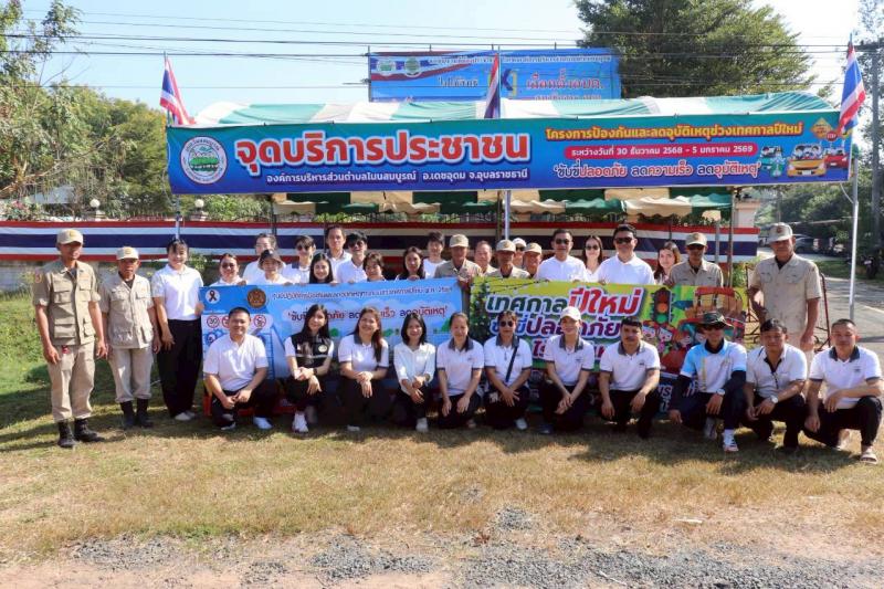 วันที่ 30 ธันวาคม 2568 ด้านองค์การบริหารส่วนตำบลโนนสมบูรณ์ นำโดย พันจ่าเอกตรีพงศ์ เสาร์แก้ว ปลัดองค์การบริหารส่วนตำบลโนนสมบูรณ์ นายรุ่งศักดา ศรมณี รองปลัดองค์การบริหารส่วนตำบลโนนสมบูรณ์ หัวหน้าสำนักปลัด ข้าราชการ พนักงาน ทุกท่าน ????????ได้จัดกิจกรรมเดินรณณงค์ป้องกันและลดอุบัติเหตุทางถนนช่วงเทศกาลปีใหม่ ประจำปี พ.ศ. 2569 ณ บ้านโนนสมบูรณ์ หมู่ 5 ตำบลโนนสมบูรณ์ อำเภอเดชอุดม จังหวัดอุบลราชธานี เพื่อเป็นการลดและป้องกันอุบัติเหตุทางถนนในช่วงเทศกาลปีใหม่ (เมาไม่ขับ) จัดโดย อบต.โนนสมบูรณ์ อ.เดชอุดม จ.อุบลราชธานี