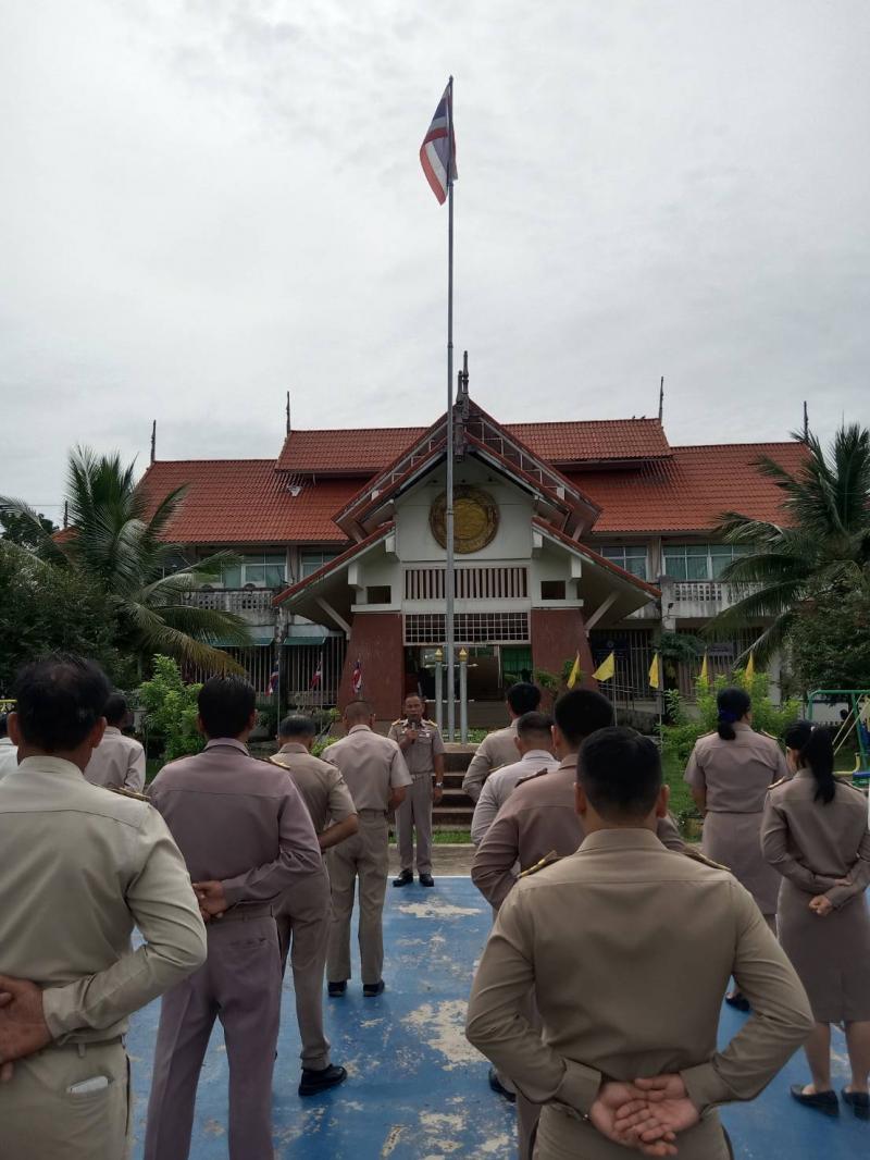 หัวหน้าส่วนราชการ ผู้อำนวยการกอง พนักงานส่วนตำบล และเจ้าหน้าที่ ร่วมกิจกรรมเข้าแถวเคารพธงชาติ