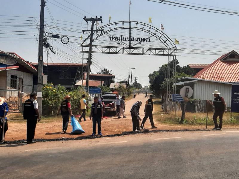 นำโดย นายดวน ภูมิภักดิ์ รองนายกองค์การบริหารส่วนตำบลโนนสมบูรณ์ พร้อม นายบัวกรรณ์ วรรณริโก รองนายกฯ ปลัด อบต. ประธานสภาฯ สมาชิก อบต. ผู้ใหญ่บ้าน หมู่ 5 ผู้อำนวยการกองช่าง และพนักงานเจ้าหน้าที่ อบต. ร่วมซ่อมแซมถนน คสล.โดยใช้ยางมะตอยสำเร็จรูป และติดตั้งไฟฟ้าส่องสว่างสาธารณะ